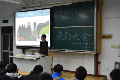 在这个春暖花开的三月,我院广大团员青年积极响应学校“学习雷锋好榜样,争做精神富有大学生”的号召,开展了系列志愿服务活动。为了总结与表彰各个团支部在此次学雷锋活动中做出的贡献,3月27日晚,我院于阶教204召开了“学习雷锋精神,传递人间真爱”主题团日活动总结表彰大会,全院18个团支部代表参加了会议。 各班团支部以PPT汇报的形式展现了各自在三月学雷锋活动中所开展的活动:有开展主题班会学习雷锋事迹、雷锋精神的,有组织班级辩论赛的,有观看雷锋电影的,有看望慰问敬老院老人的,有组织到校园里、衢江边、斗潭社区、农贸市场清扫卫生的……一系列内容丰富、意义深刻的活动,充分展现了该院大学生良好的精神风貌。最终,11材料1、12机电1、11材料2团支部分获前三名。大会还表彰了在本次学雷锋月中表现优秀的20名学雷锋先进个人。 此次表彰活动让同学们更深刻地了解了学习雷锋精神的意义,更自觉地以弘扬雷锋精神为己任,从自己做起,从身边小事做起,让学雷锋成为习惯。(徐文君 张天弘) |
